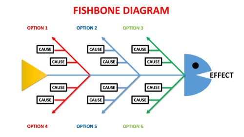 That tenacity and patience to find all of the fish bones is emblematic of the fishbone diagram (also called Cause-and-Effect diagram, Ishikawa diagram). The fishbone diagram process starts with the identification of a few prominent bones (major categories), which are then used to find deeper ones. It is a brainstorming tool used to flesh out the root causes (bones) of a problem, organize them into manageable categories, and serve as a visual method to aid laboratorians in their root cause analysis (RCA).
